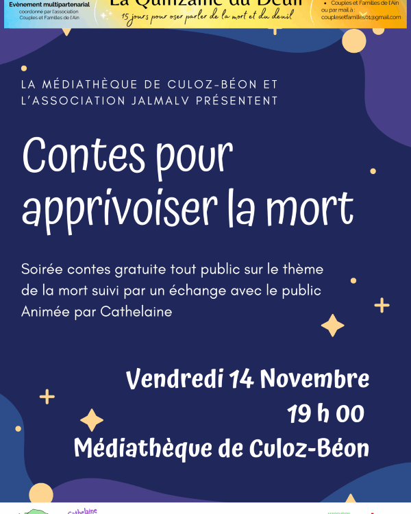 Contes pour apprivoiser la mort vendredi 14 Novembre à 19h à la Médiathèque de Culoz-Béon