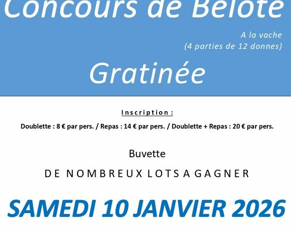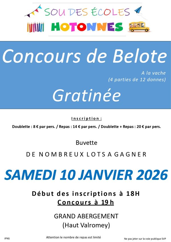 Concours de Belote Sou des écoles Hotonnes le samedi 10 Janvier