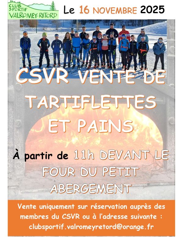 CSVR : vente de tartiflettes et pains le 16 Novembre