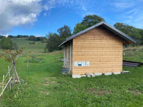 Le chalet d’accueil, tel l’empereur du Jardin continue de parfaire son costume, Merci Alphonse.