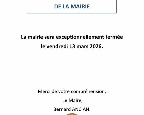 Fermeture exceptionnelle de la mairie vendredi 13 Mars