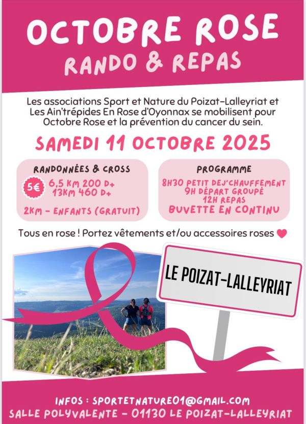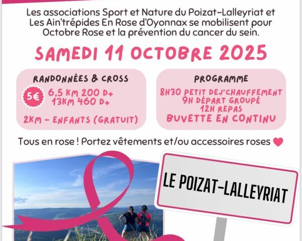 Octobre Rose : Rando et repas au Poizat – Lalleyriat le samedi 11 Octobre
