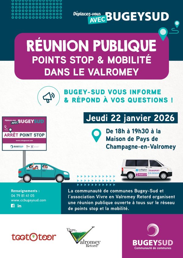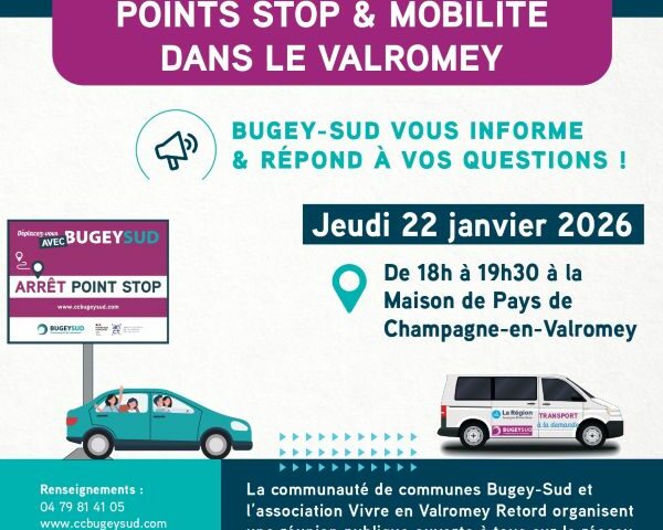 Réunion publique Point Stop et Mobilité dans le Valromey le Jeudi 22 Janvier à Champagne en Valromey